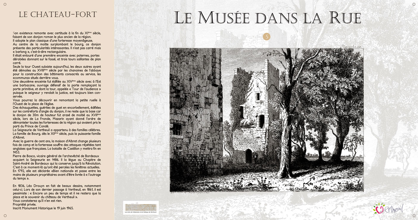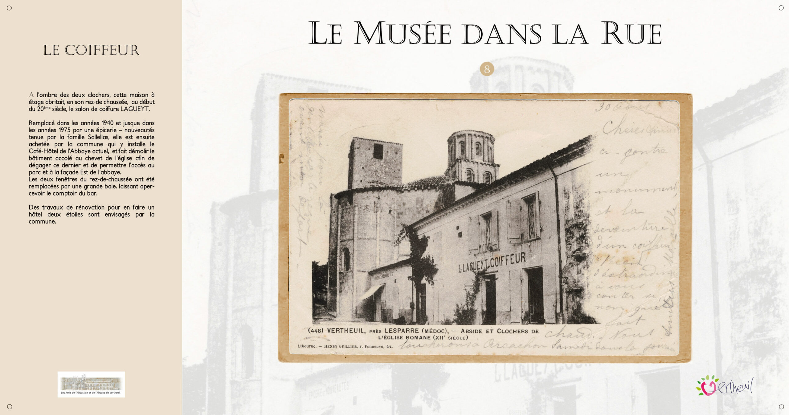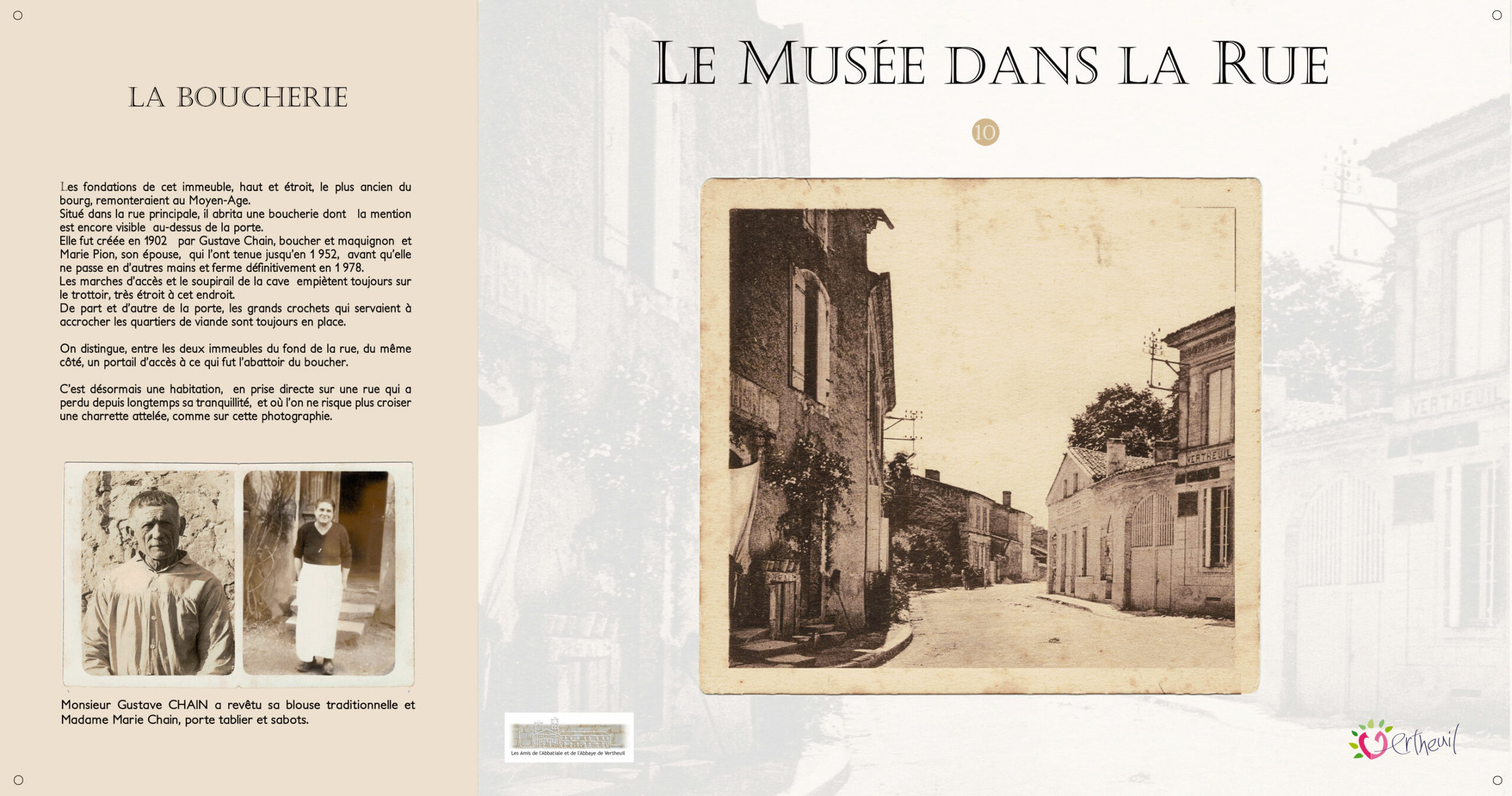 D’aucuns vous diront qu’un musée, c’est poussiéreux, barbant, figé, et fatigant à parcourir. Mais lorsqu’il est transposé dans la rue où se catapultent alors passé et présent, sur fond de circulation automobile, de cris d’enfants ou de musique, lorsque revivent, devant le même décor, des êtres disparus, qui étaient les forces vives d’un village, un musée peut être amusant, voire émouvant. Les panneaux permettront ainsi, aux curieux comme aux touristes, de comparer passé et présent, en un va et vient visuel original.Ici, pas de leçon savante. Juste la mémoire des lieux et leur transformation.Un court parcours, en dix étapes, signalées sur un plan offert au visiteur, pour rappeler qu’un village, c’est la conjonction du passé et du futur. »